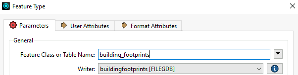 C:\FMEData\Data\Engineering\BuildingFootprints\buildingfootprints.gdb (Note: download and extract this file to this path if you do not already have FMEData loaded. Once the folder is extracted, the geodatabase is located inside the extracted folder.) |