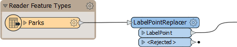 To do this, the author finds the LabelPointReplacer parameter and changes it (either directly in the FME parameter or via the Text Editor window) to be @Value($(UserAttrSelection)).