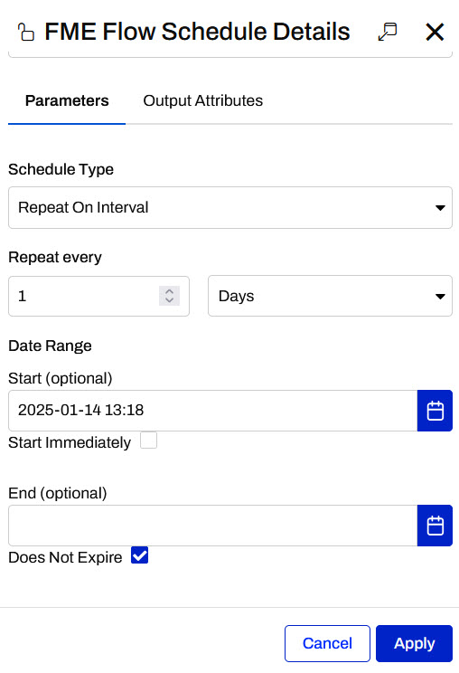 An FME Flow Schedule trigger in an Automation provides almost the same schedule configuration options as a Schedule task.