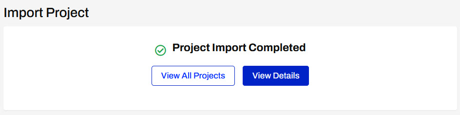 You should see the Project Import Completed with a green checkmark once the project has been imported successfully.