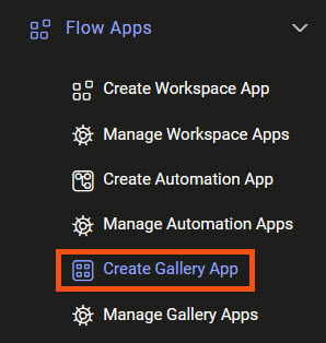 Expand Flow Apps from the side menu, then click Create Gallery App, to create a new Workspace App.