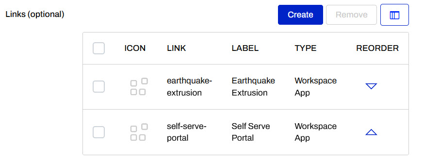Click Create to add a second workspace app. Set this link to the self-serve-portal workspace app and label it as Self-Serve Portal.