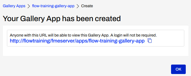 Scroll down to the bottom of the page and click OK to create your Gallery App.