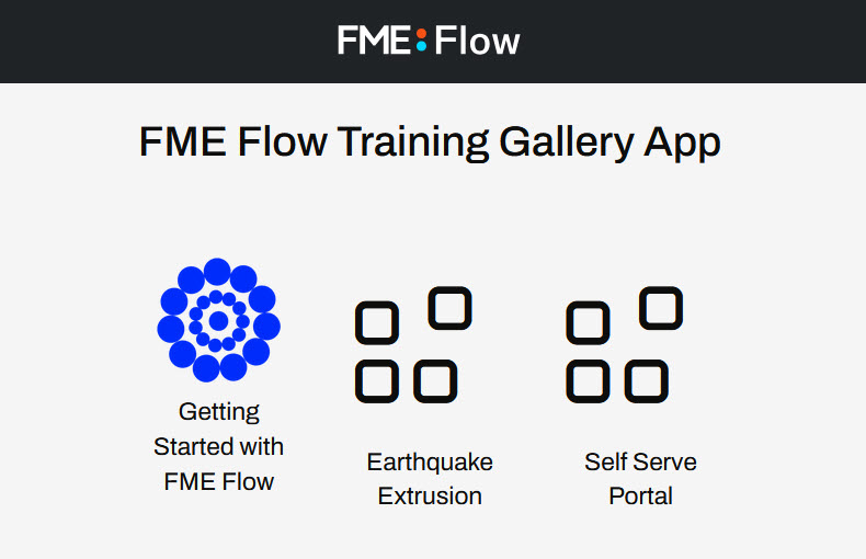 You've created some FME Flow Workspace Apps you want to share with your colleagues to access FME functionality without having them be FME Flow users. You can share the workspace app links individually, but as you create even more apps, there will be multiple URL links for everyone to keep track of. Therefore, you will create a Gallery App that acts as a landing page for multiple Flow Apps and URLs and share it out to your colleagues as a single URL link.