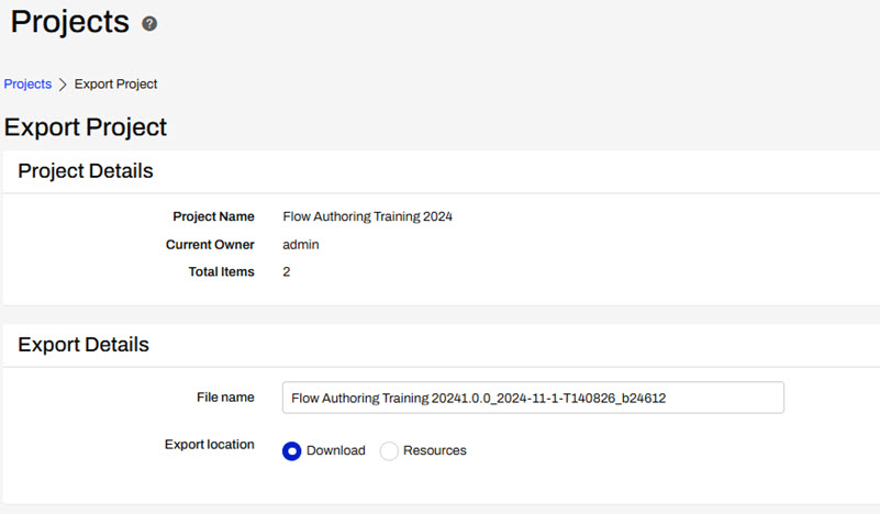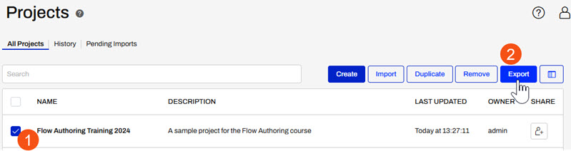 To export a project and download the project file, navigate to Projects > Manage Projects