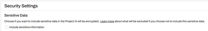 For this training, deselect "Include sensitive information" to ensure encryption is not required.