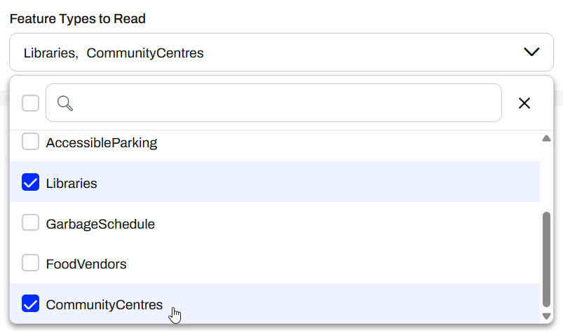 Jennifer is creating a user-controlled self-serve workflow. Jennifer's workspace reads in community features from the CommunityMap file geodatabase and then writes them out using a Generic writer, which allows writing to any FME-supported format. She wants the user to be able to select which feature layers to download and the output format of the data.