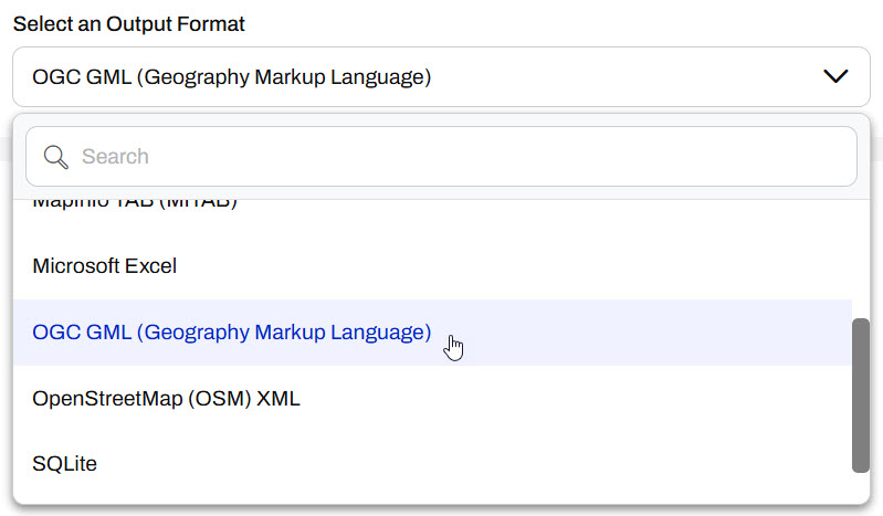 This opens the prompt where Jennifer selects the output format from the drop-down and the community map feature types to include.