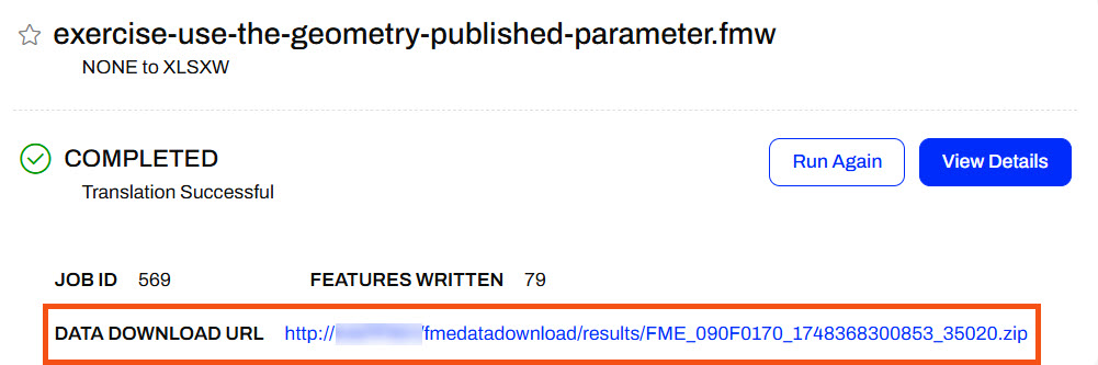 Once the workspace finishes running, Jennifer clicks on the Data Download URL to download the data.