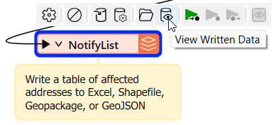Jennifer clicks Run and waits for the translation to finish. Then she clicks the NotifyList writer feature type and clicks View Written Data.