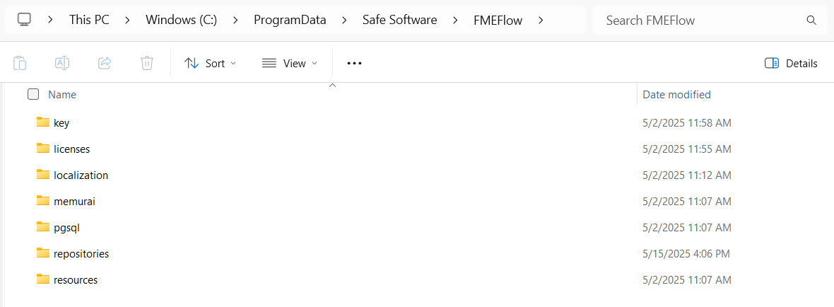 Although it's not a running service, the FME Flow System Share is a file storage location for user-accessible data and resources. The FME Flow System Share stores workspaces, source data, log files, and other essential data relating to FME Flow, like encryption keys and licenses.