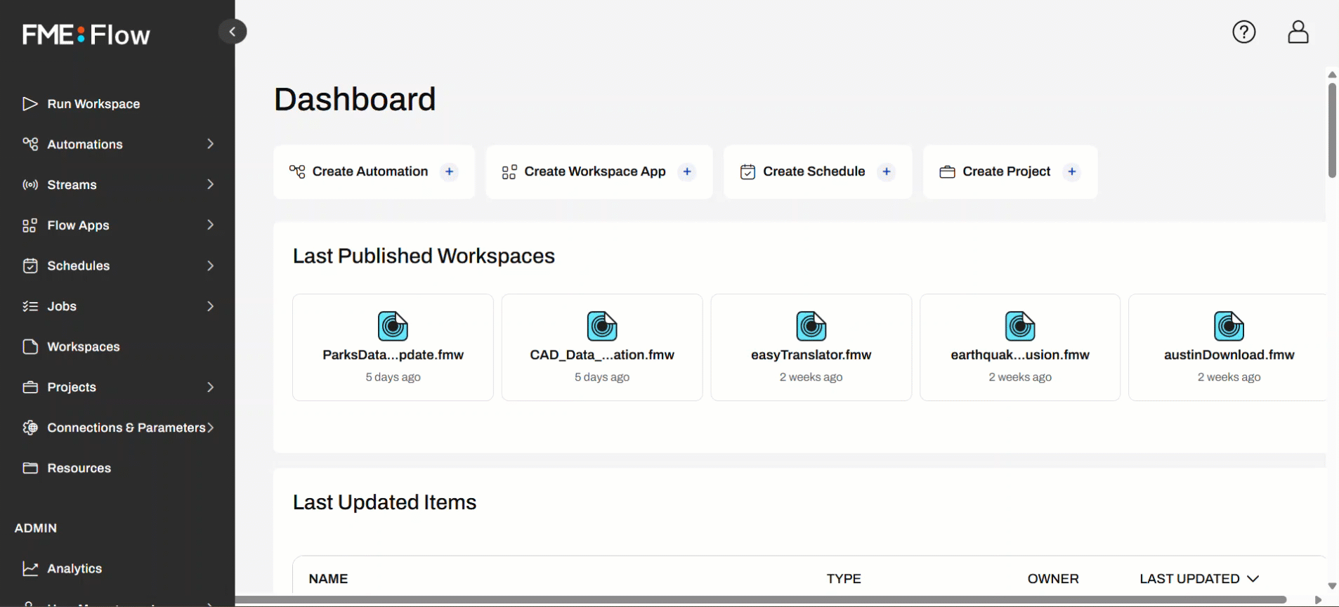 In this lesson, you'll explore the power of FME Flow through a guided, hands-on tour. You'll use FME Flow's two most popular features - FME Flow Apps and Automations.