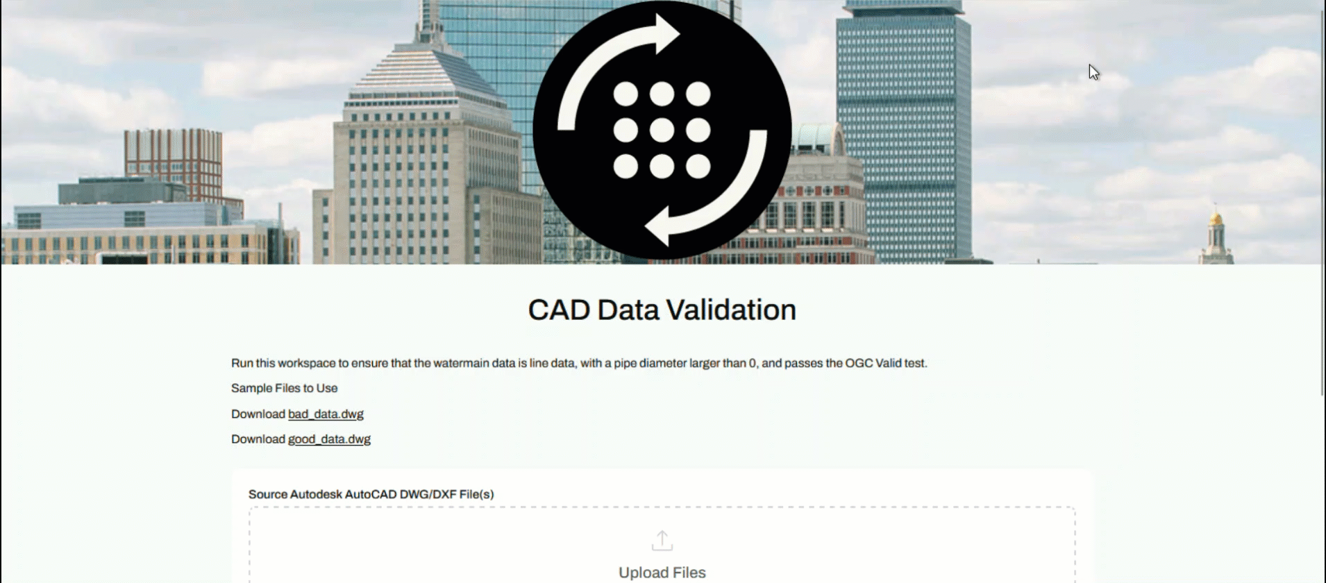 Next, you’ll explore an App that lets users upload CAD files and validate their contents. You don't need any FME experience to access FME functionality using Flow Apps.