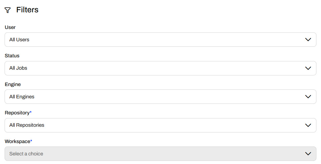 If you're no longer on the completed Run Workspace page and wish to view job details, you can view all recent jobs from the Jobs page. If you click on a job, the same detailed view opens as from View Details on the completed Run Workspace page.
