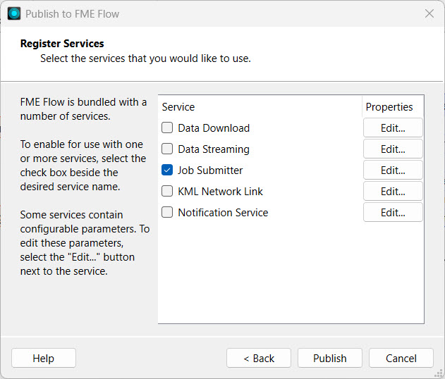 Sven registers the workspace with the Job Submitter service and clicks Publish.