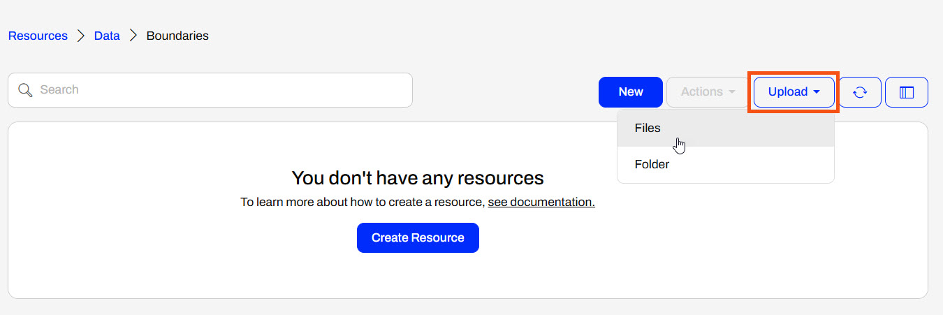 You do not need to publish a workspace to upload data to the FME Flow Resources. Instead, you can upload data directly to Resources from the FME Flow web interface. It's as simple as navigating to your desired folder, selecting upload for files or a folder, and then selecting your data from the file system.