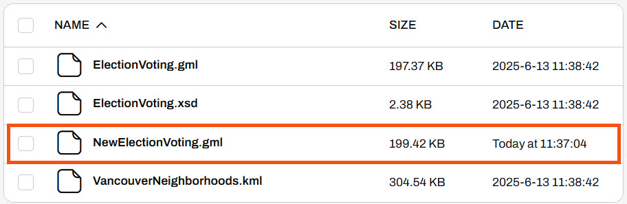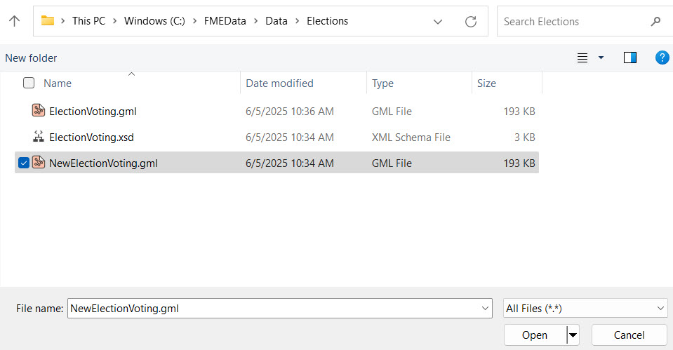 FME Flow adds the NewElectionVoting.gml to the folder, which is ready to use as source data for workspaces.