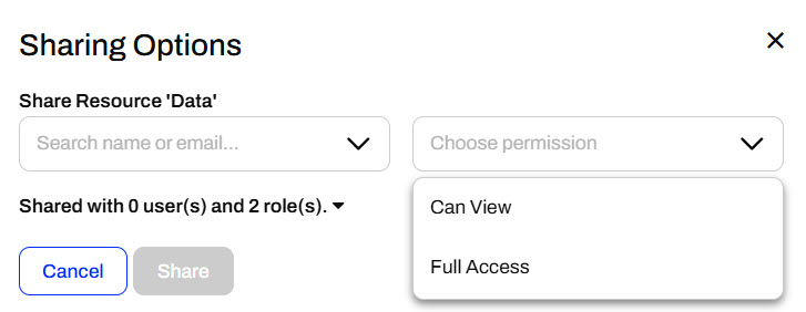 For example, when you share a Resource folder, you can only allow users to view the content or assign them full access.