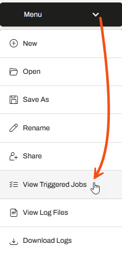 Sven opens the Automations Menu and clicks View Triggered Jobs.