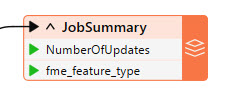 She clicks OK, then checks the JobSummary attribute drop-down. She only has the NumberOfUpdates and fme_feature_type.