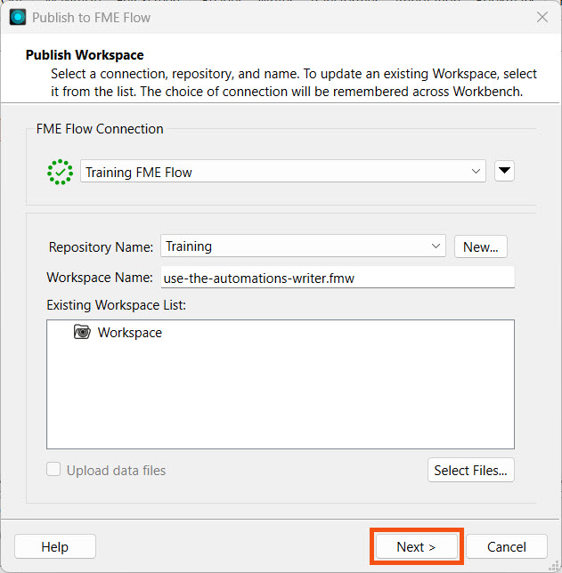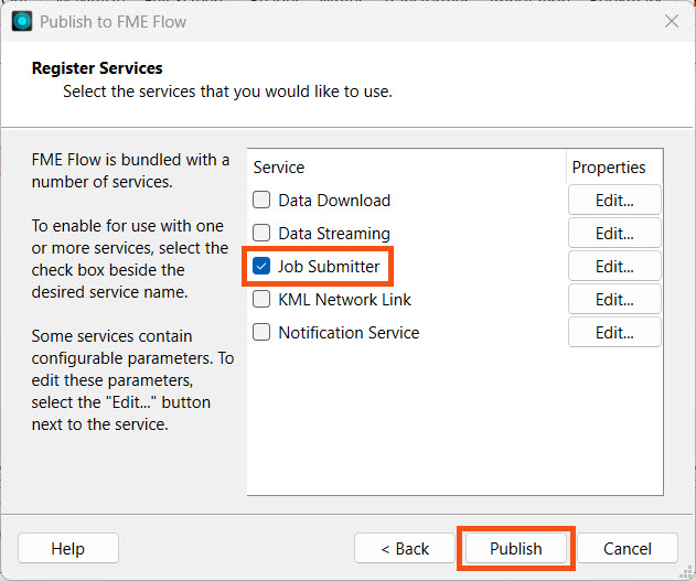 For more information on publishing workspaces to FME Flow and FME Flow's services, see the Deploy Workspaces on FME Flow course.