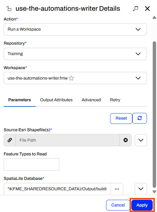 If you still have your Incoming Building Footprints Automation from Respond to Real-time Events, you may continue editing it. Otherwise, you can import the Automations-Writer-Template Automation with the automate-workflows-with-fme-flow--starting-project.fsproject.
