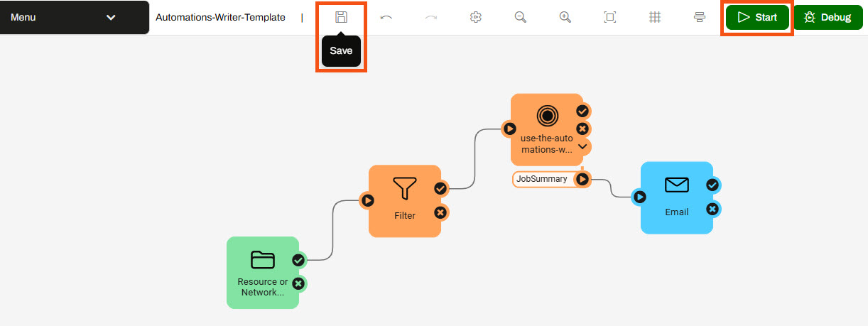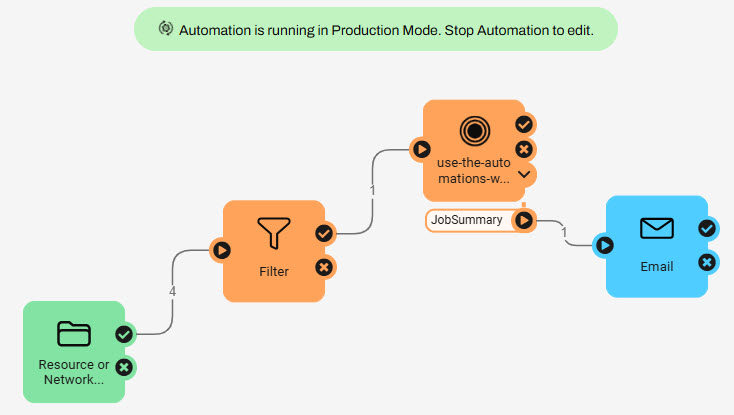 The Automations Writer offers flexibility in what information you pass out of a workspace and into the Automation. You can create as many output ports as required to allow advanced filtering or pass multiple messages to numerous downstream actions.