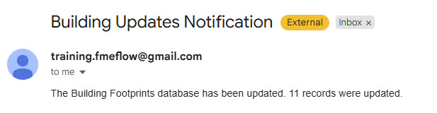Jennifer has successfully built an Automation to process shapefiles for building updates and update a database. She used an Automations Writer to pass summary information about the number of updates from the workspace to send an email.