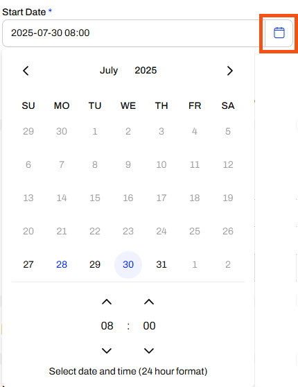 Under the Date Range, Jennifer opens the calendar and sets the schedule to start tomorrow at 8:00 am.
