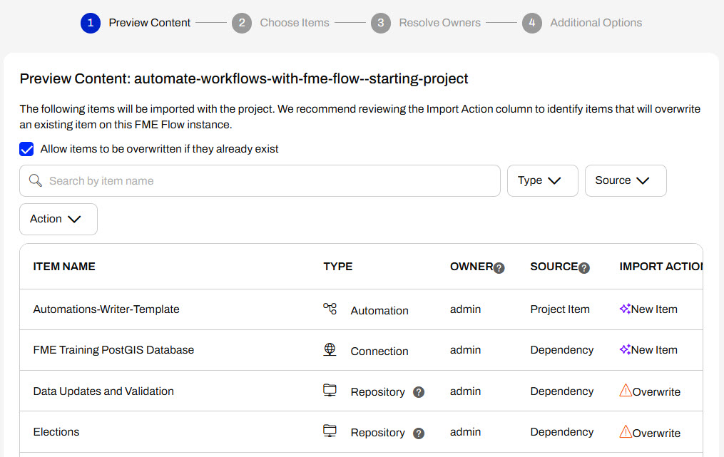 If you're completing this lesson with your own FME Flow, you must import the starting project with the content into your FME Flow.