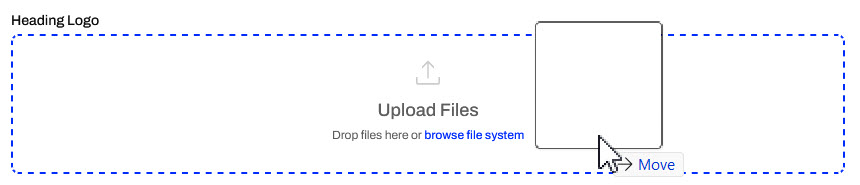Jennifer opens the File Explorer and navigates to the customize-flow-apps_logo.png (C:\FMEData\Resources\FlowApps\customize-flow-apps_logo.png). She drags the file and drops it into the Upload Files area for the Heading Logo.