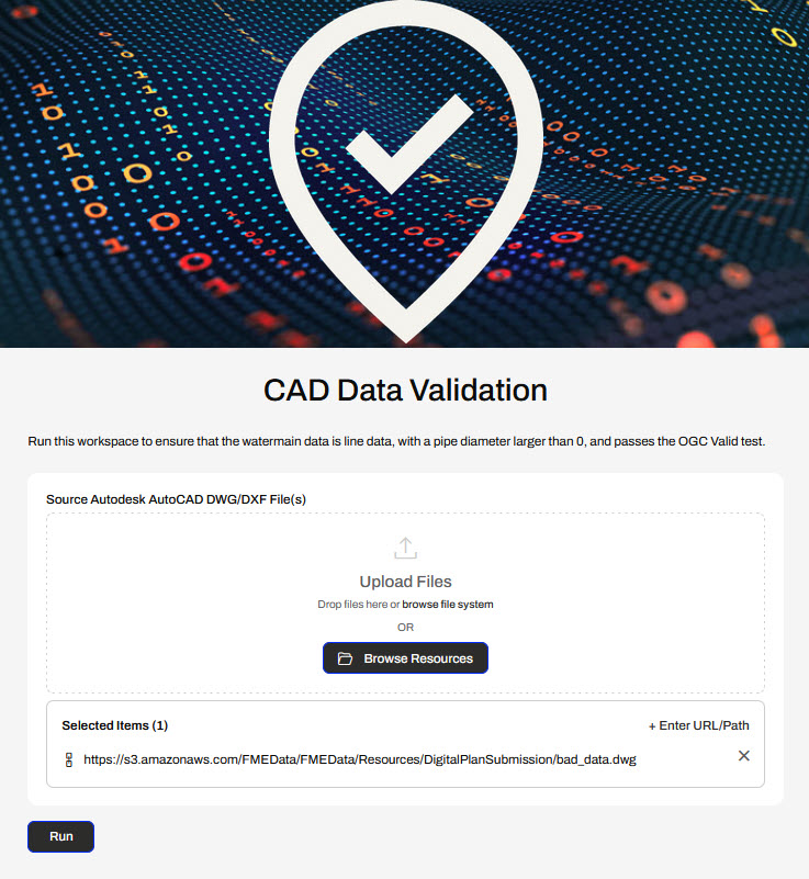 Jennifer has now built and customized an FME Flow Workspace App that validates CAD data input and returns a validation report to the user.