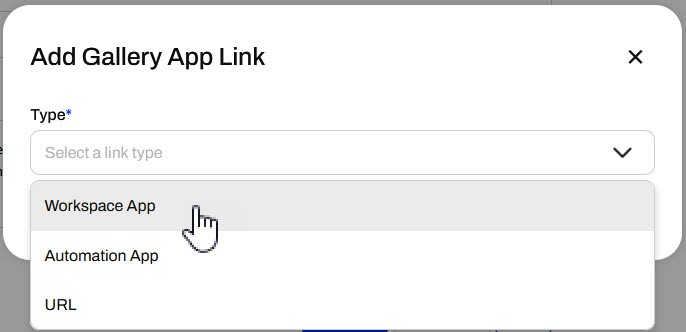 Gallery Apps act as landing pages to link to other apps and websites. You add links to Workspace Apps, Automation Apps, and external URLs that display with customizable text and icons on the Gallery App page. Like all other Flow Apps, you access Gallery Apps from a single URL. By linking to other apps and websites from the Gallery App, you can group and share content by sharing only one URL, which is the Gallery App itself.