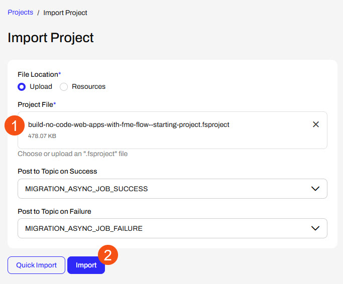 If you're completing this lesson with your own FME Flow, you must import the starting project with the content into your FME Flow.