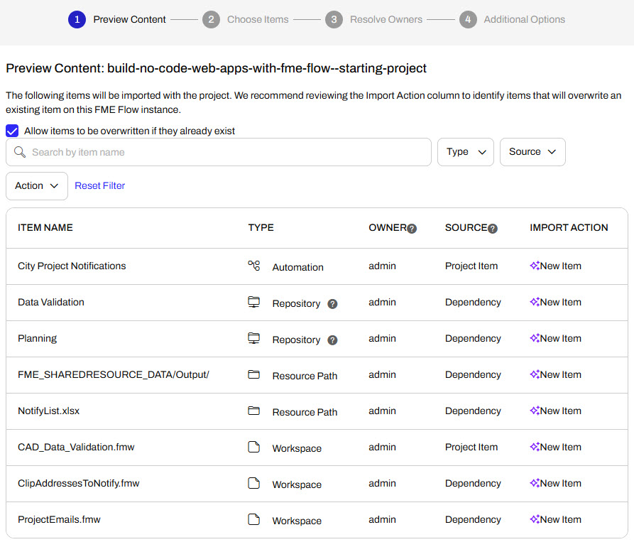 If you're completing this lesson with your own FME Flow, you must import the starting project with the content into your FME Flow.
