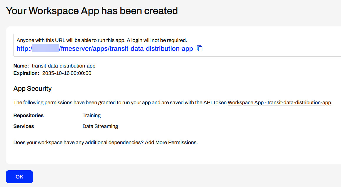 FME Flow creates the app and displays the URL to Jennifer. Jennifer clicks the URL to open the app in another tab.