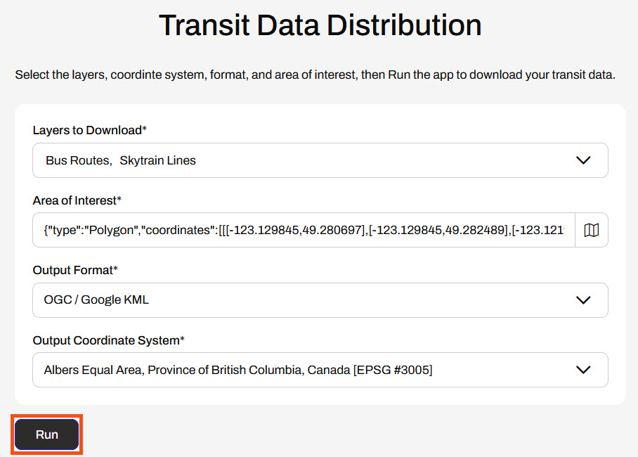 For Layers to Download, she selects "Skytrain Lines" and "Skytrain Stations."