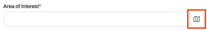 When you run a workspace with a Geometry parameter, the parameter enables an interactive web map on FME Flow that allows you to draw a point, line, or area of interest to input to a workspace. You click the map icon from the Geometry parameter to open the web map.